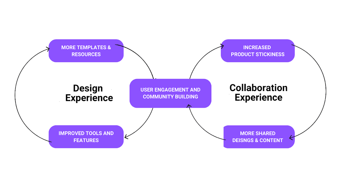 This loop illustrates how Canvaâs investment in templates, resources, and usability directly enhances user satisfaction and drives organic growth. By continuously improving its offerings, Canva sustains its position as an indispensable tool for millions of users.