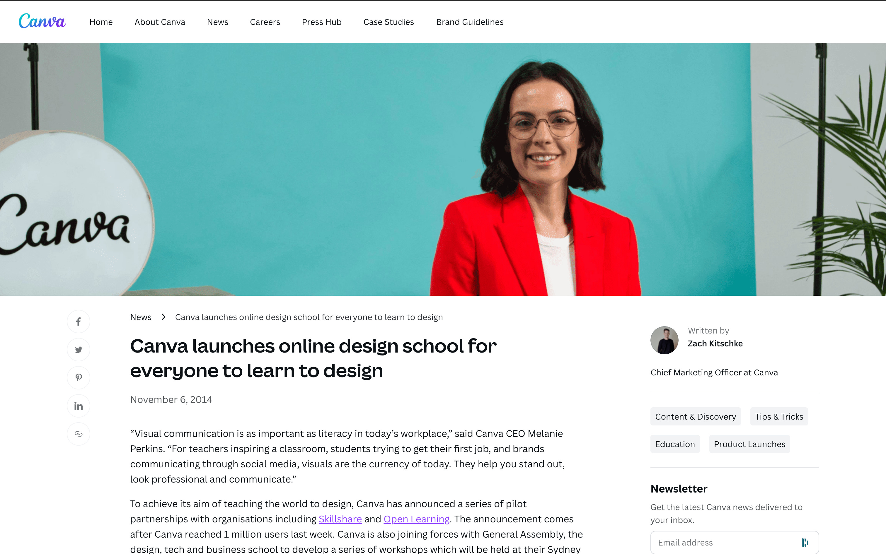 Canvaâs content marketing strategy has been integral to its growth, focusing on helping users achieve their goals and empowering them through education. At the center of this strategy is the Canva Design School, an extensive library of educational resources covering everything from beginner design principles to advanced techniques.