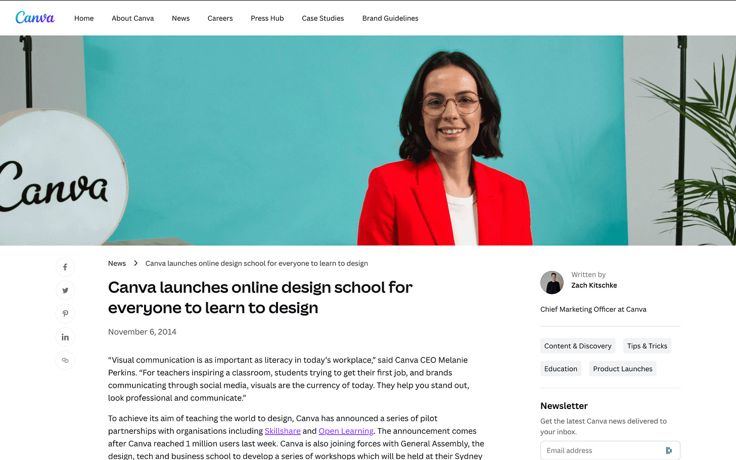 Canva created an aspirational launch video that showcased the platformâs vision and potential. Supported by targeted ad spend, the campaign generated buzz and significantly increased brand awareness. The video not only inspired users but also positioned Canva as a forward-thinking and approachable tool for design.Podcast and TV Appearances