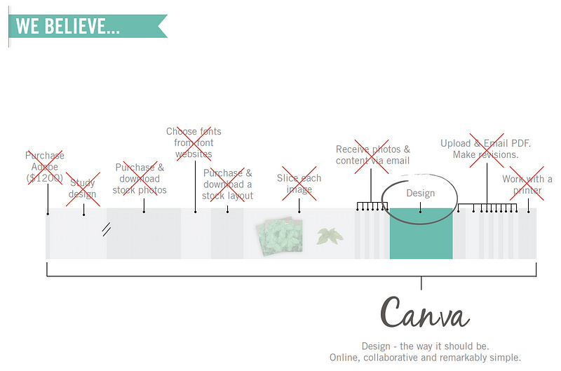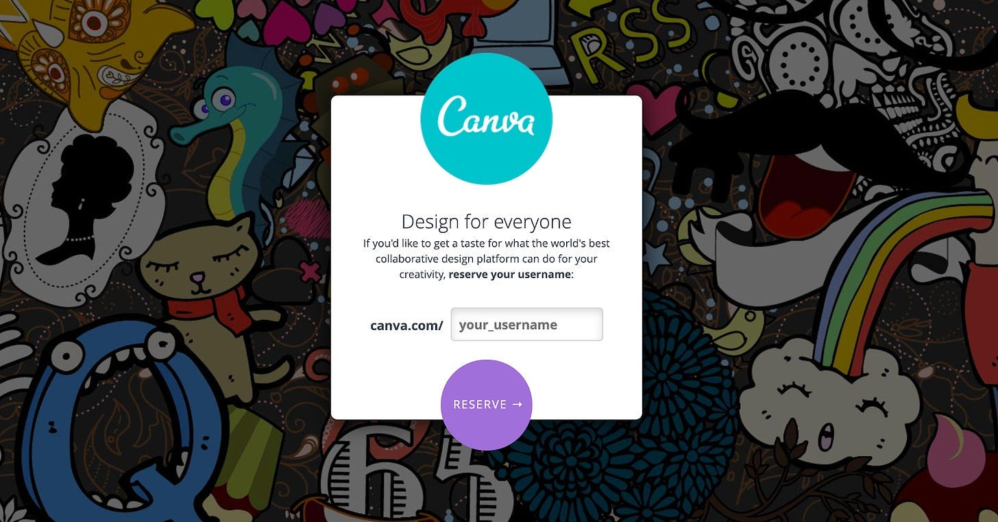 This vision comes across everything Canva does, from the very beginning of its days â this is what the initial website looked like when Canva was launched in a private beta. Note the simplicity of the design and the clear messaging, completely different from Adobeâs focus on professional designers.
